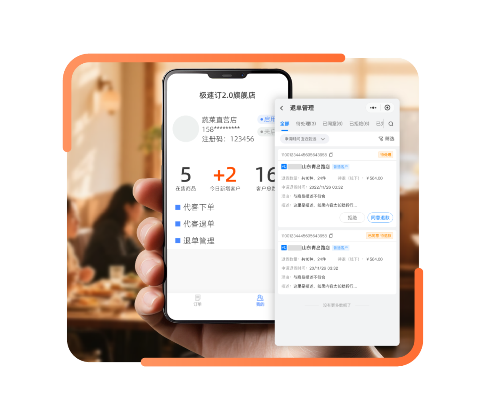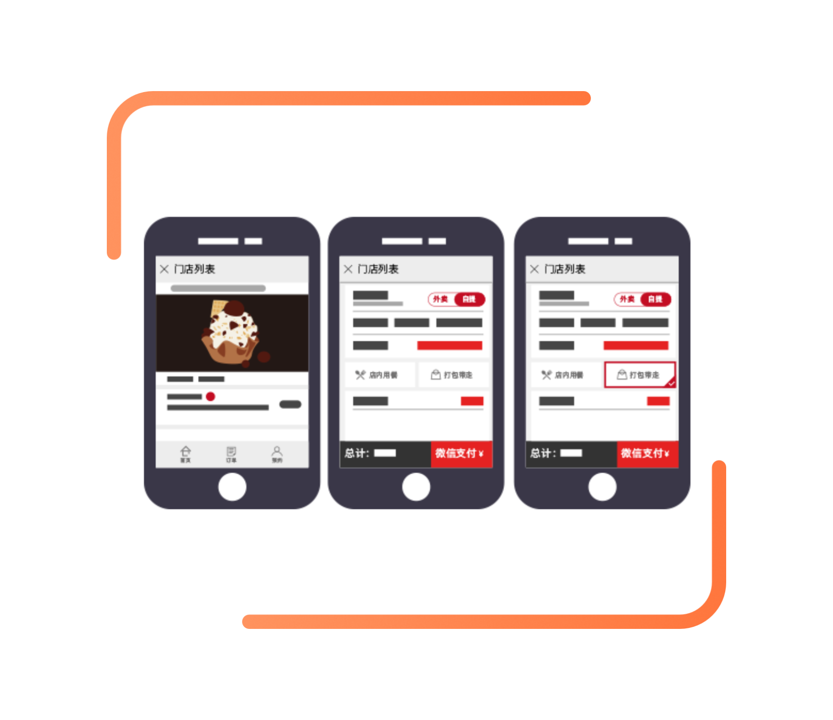 效率向上: モバイル注文で全行程をカバー、人員の往復を削減、サービス応答を低減