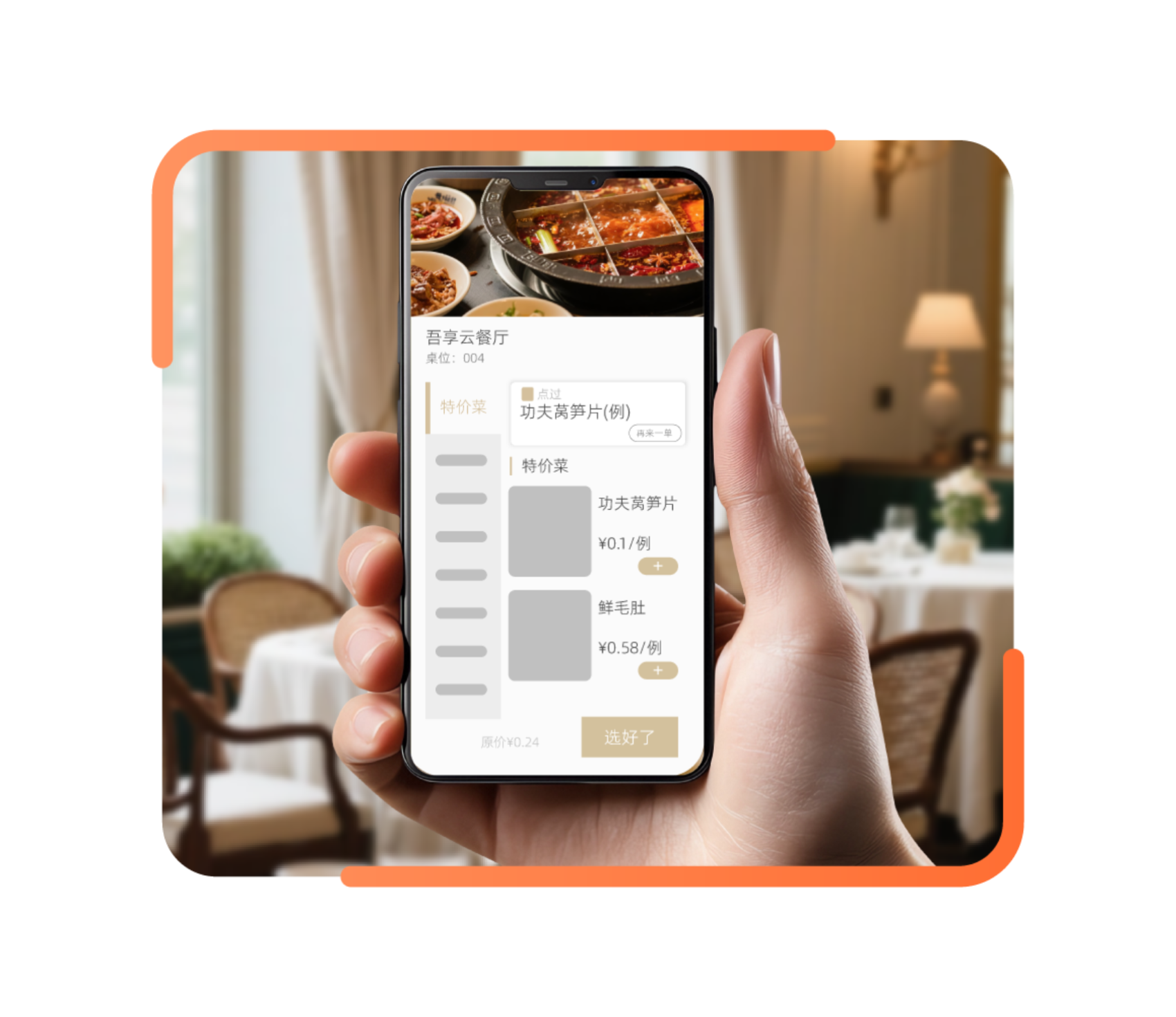 事前注文+QRコード注文: オンライン順番待ち中に料理を事前選択、来店後QRコードでワンタッチ注文テーブル側柔軟決済: 多プラットフォーム券の利用確認を支援、即時決済で待機不要