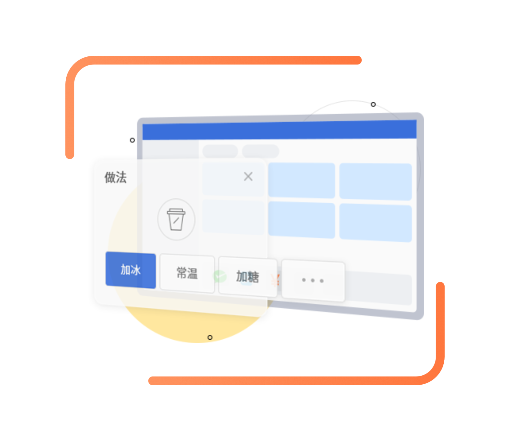 流程に沿った、シンプルで分かりやすいのデザイン茶飲料業界のオーダー流程に合わせた画面デザインで、操作のハードルを低減