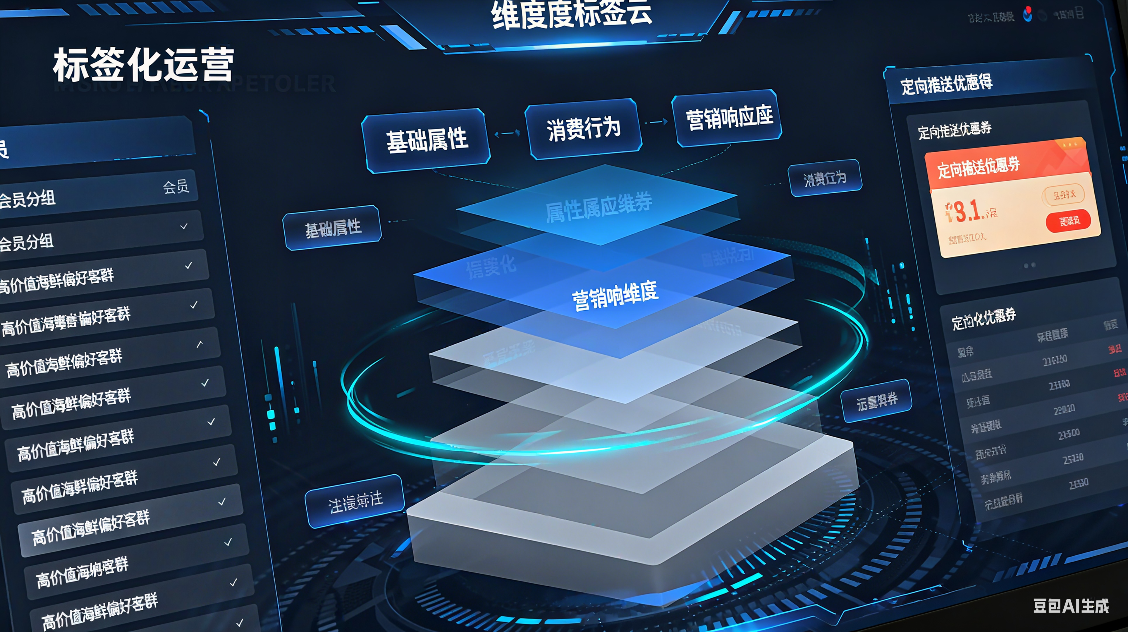 *画像应用:系统自动根据标签分组,如“高价值海鲜偏好客群”(消费频次≥3次/月,客单价≥100元,近1次消费含海鲜),定向推送“海鲜满200减50”券。