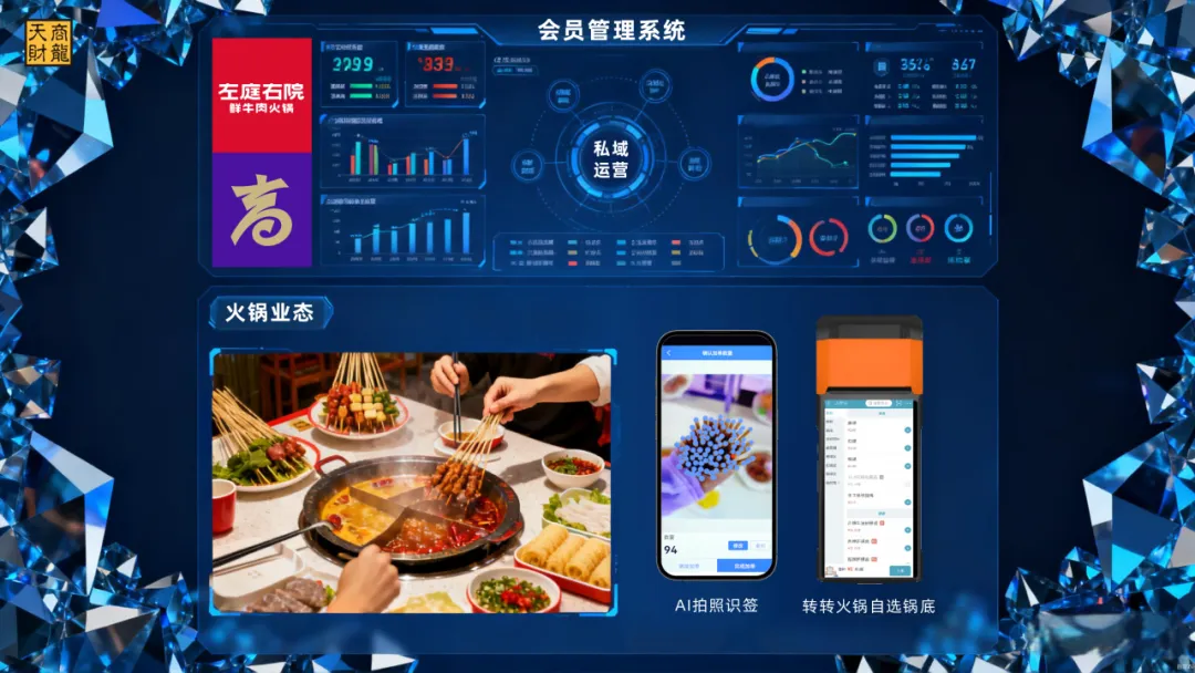 本次发布会中,天财商龙正餐运营经理于霞分享的方案,核心亮点是 “运营创新 + 用户留存” 双管齐下,既能支持串串店 AI 拍照识签、转转火锅扫码选锅底、半自助称重计价等模式,又能通过私域会员体系强化用户粘性,帮助左庭右院、重庆高老九等品牌在红海中找到增长突破口。