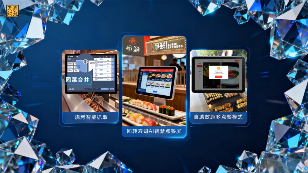 针对烧烤的出餐慢、日料的鲜度管控、自助的高峰压力,提供专属数字化工具,如烧烤业态有智能合并抓串与超时预警功能,日料回转寿司搭配 AI 点餐屏(视觉化选品 + 互动玩法)与精准传菜,自助放题支持多模式点餐与区分化厨打,助力很久以前羊肉串、争鲜等品牌的高效运营可快速复用,全方位满足细分赛道运营需求。