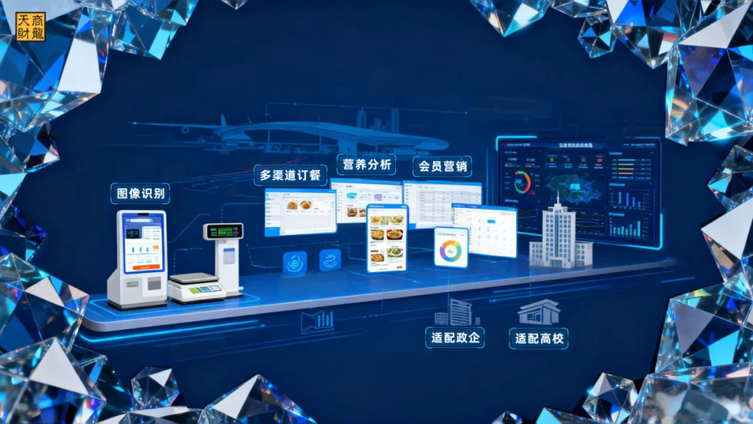 发布会上,天财商龙团餐事业部销售总监贾迎鑫针对团餐市场 2.6 万亿规模下的 “效率低、标准化难” 痛点,发布全流程智能方案:前端通过 AI 图像识别结算、智能称重等多元模式,降厨余浪费超 90%;中端依托多渠道订餐 + 会员营销 + 营养分析,实时优化服务;后端以数据大屏实现多维度可视化管控,告别经验运营。