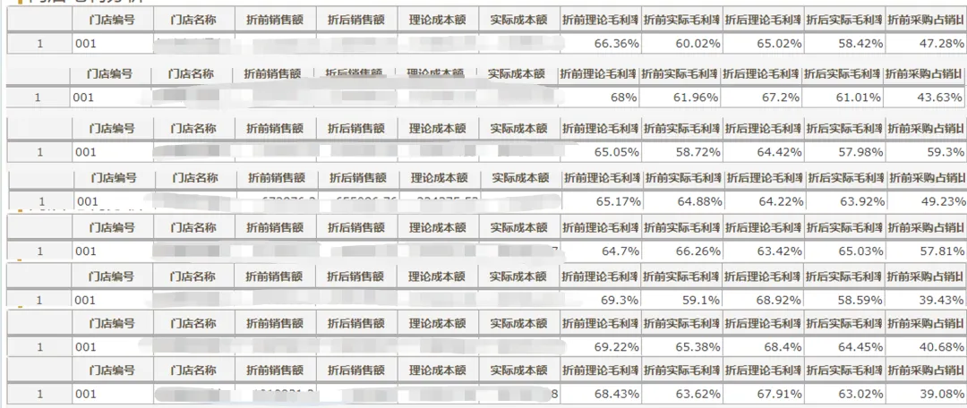 实现理论毛利率、实际毛利率,以及食材的理论实际耗用数量差异的精细化管理,提升毛利率。折后毛利提升5%,采购占销比下降8%,且门店人员可自行分析成本数据。