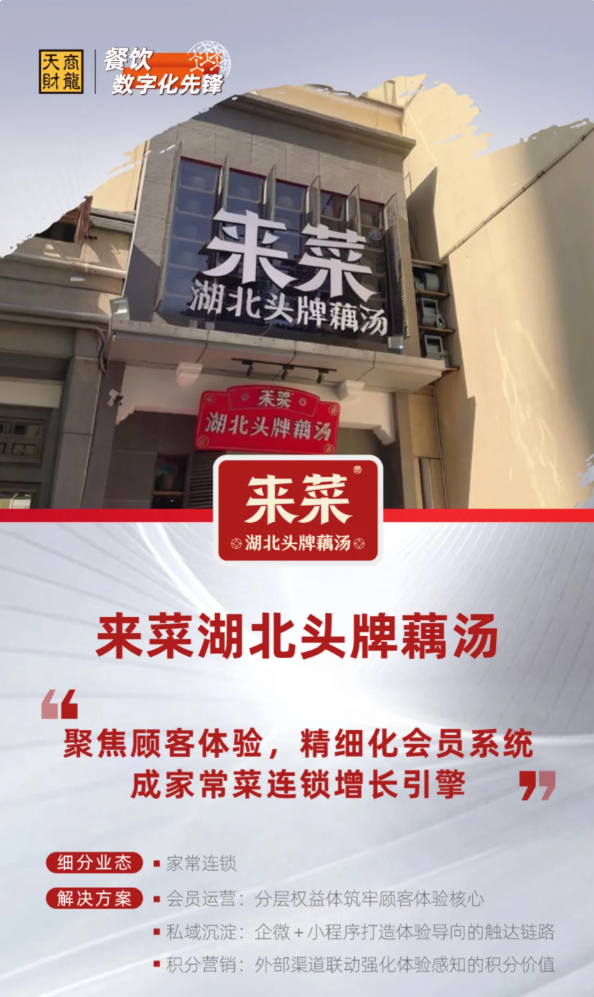 未来,随着来菜的高速发展,天财商龙将继续以数据驱动的精细化运营服务,助力品牌在规模扩张的同时,持续升级顾客体验,实现 “体验领先、增长稳健” 的双赢目标,进一步巩固来菜的湖北菜头部品牌地位。