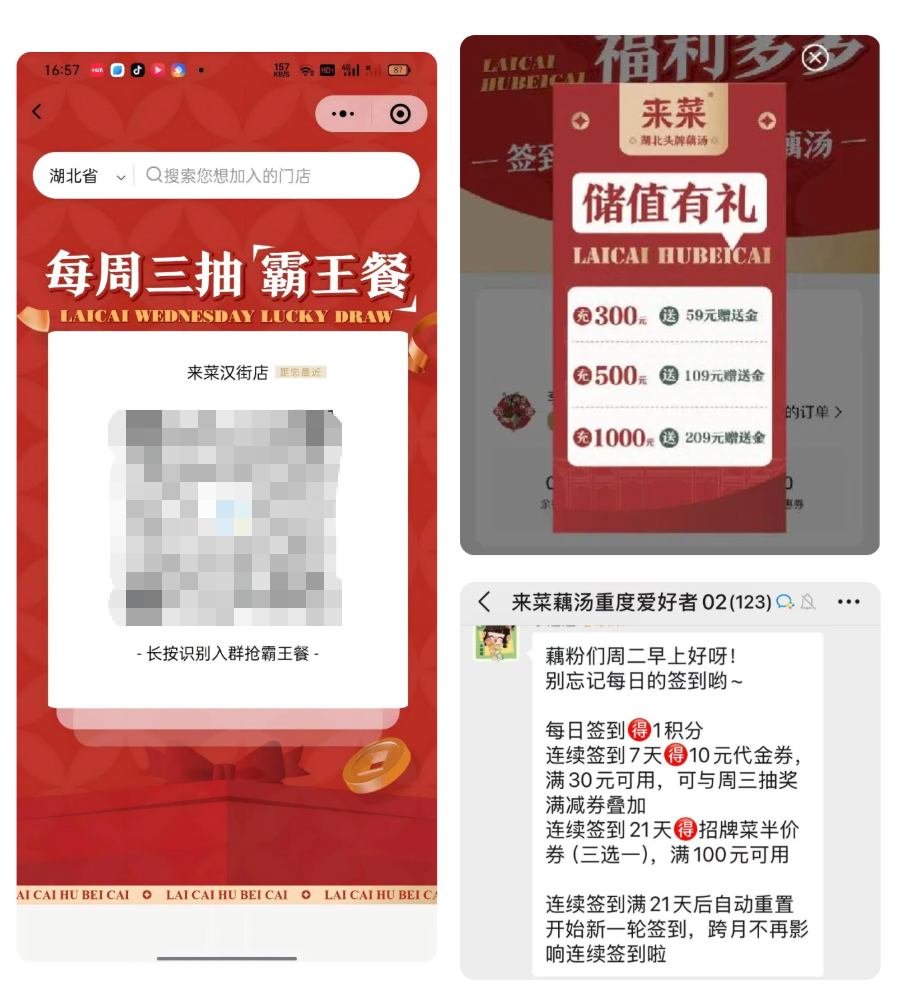 合作后,天财商龙助力来菜构建 “企微 + 小程序 + 社群” 的私域闭环,让顾客在每一个触点都能感受到连贯的优质体验:
