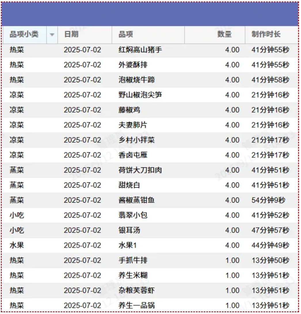 标准化时长管控,杜绝超时:系统内置 “菜品标准制作时长”,从 “起菜” 开始计时,超时菜品自动预警,每日复盘超时原因,倒逼出餐效率提升。