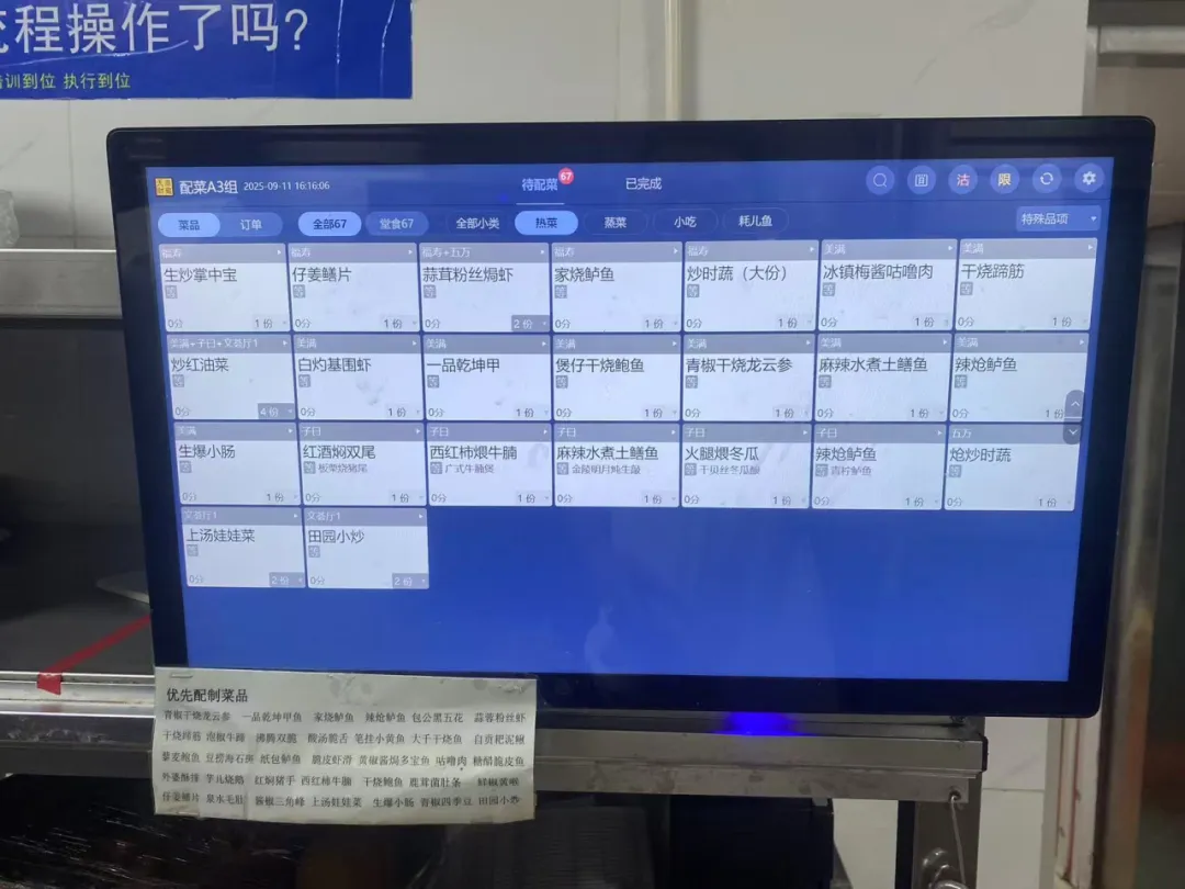 流程优化提效:取消 “打荷” 岗位,由墩子兼顾 “切配 + 打荷” 工作,实现 “切配与预处理同步进行”,压缩中间环节;同时调整菜品合并数量与二次加单响应机制,优先处理高优先级订单(如催单、宴会需求)。
