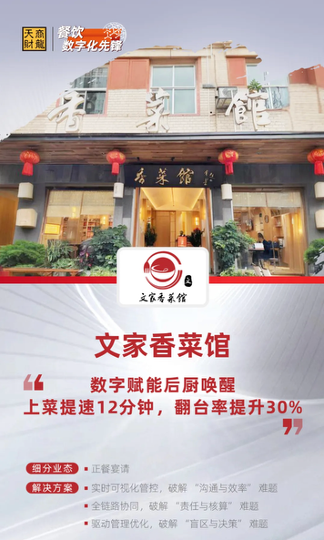 从 “人工主导” 到 “数据驱动”,从文家香菜馆的转型实践中,我们能清晰看到:对于宴会 + 正餐业态而言,数字化不是 “选择题”,而是 “生存题”。天财商龙凭借对行业的深刻洞察、专业的厨房管理系统与餐饮系统,以及全面的产品解决方案,帮助文家香菜馆重构了后厨智能出品场景,实现了 “效率、成本、体验” 的三重突破,也为同类餐饮品牌提供了可复制的转型路径。
