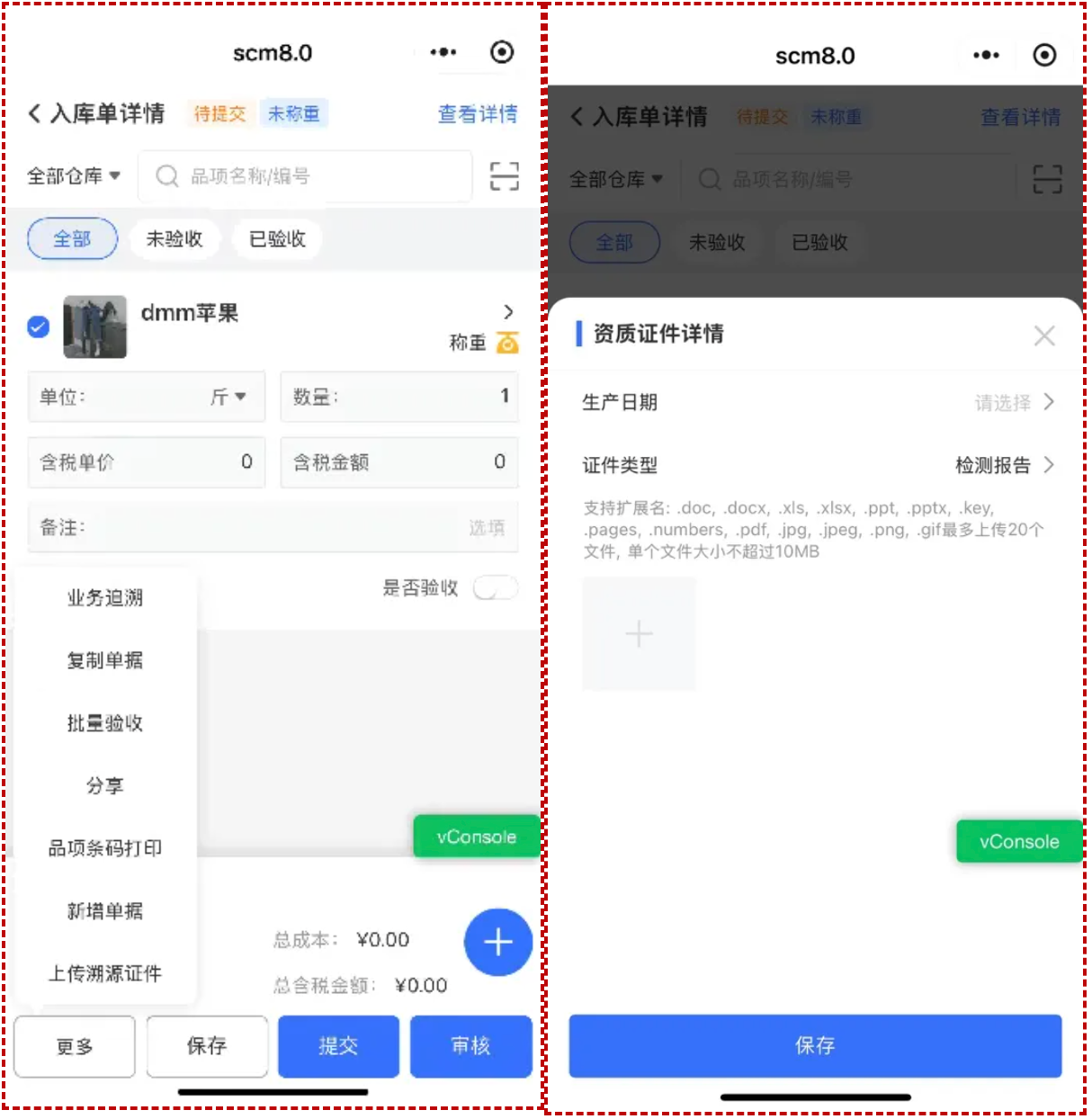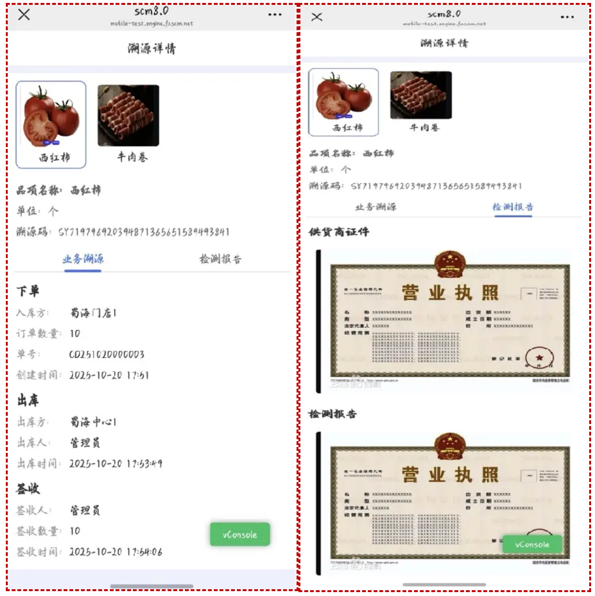 在食材流转过程中,相关的票据凭证(如采购单、检疫合格证明、物流运单等)可随时上传并与对应的溯源二维码关联。这一步丰富了溯源信息维度,形成了完整的进销存闭环证据链,增强了溯源的可信度。