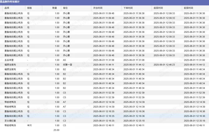 管理决策更精准:基于档口日报数据,优化高频超时品类的备货流程;根据催单集中时段(如午市12:00-13:00、晚市19:00-20:00),提前增配临时帮厨,催单率同比下降40%。