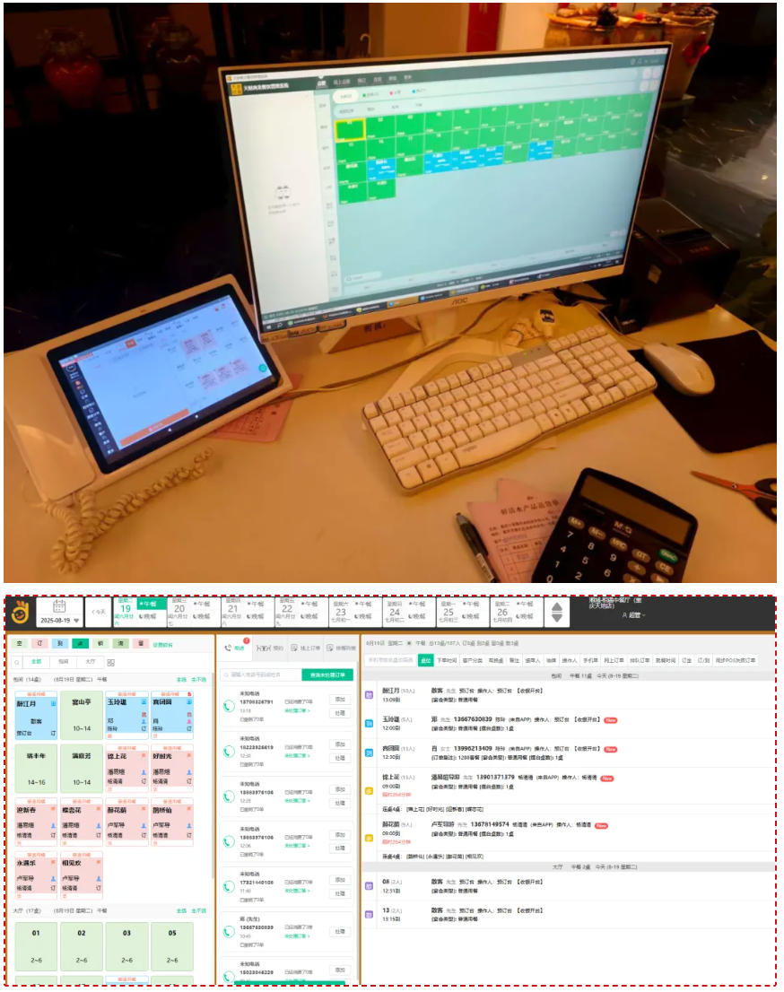 全渠道预订整合:上线天财商龙智能预订管理系统 PC 版、智能预订电话 PRO 及手机 APP 预订系统,支持多端同步预订,打破传统手工记录的局限,前厅人员可快速浏览当日预订情况,实现一键开台下单。