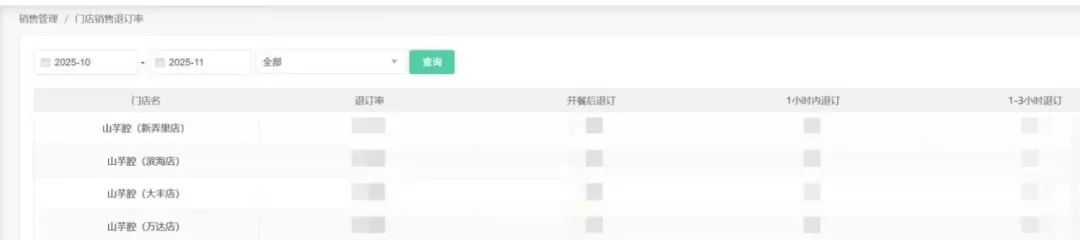 △ 各门店退单率