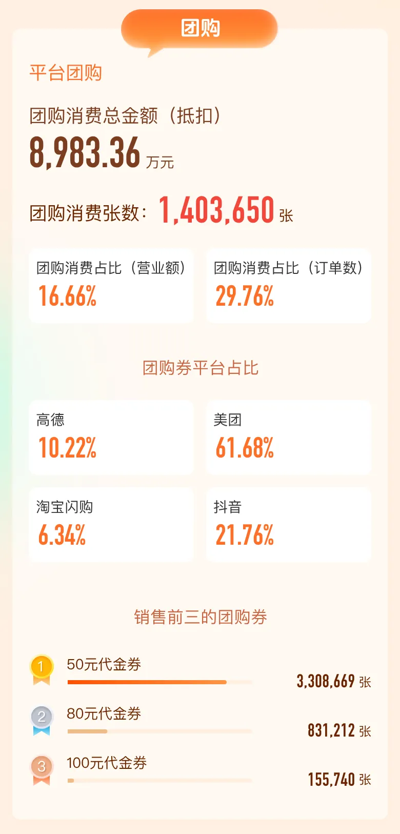团购占比量、代金券销售量,直接反映了客群更喜欢哪种类型的营销,2026可以针对性发力哦!