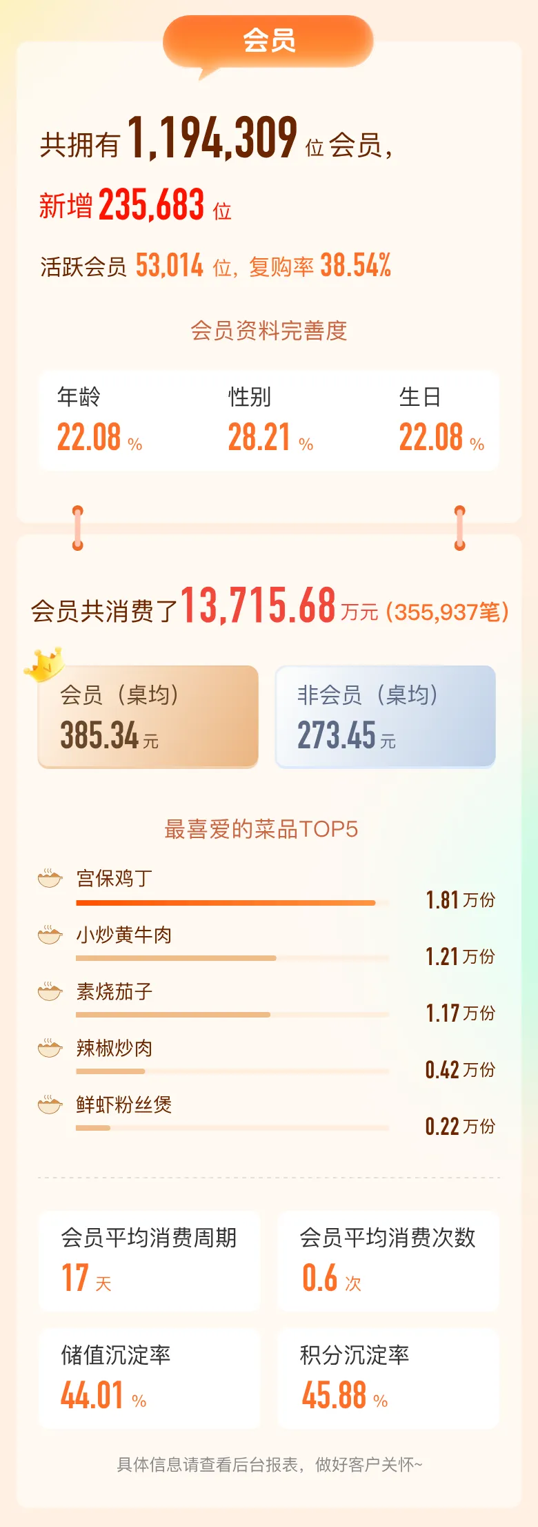 会员桌均、复购率,这些与会员消费潜力相关的数据,一定要多多关注,2026才好设计会员福利和营销活动。