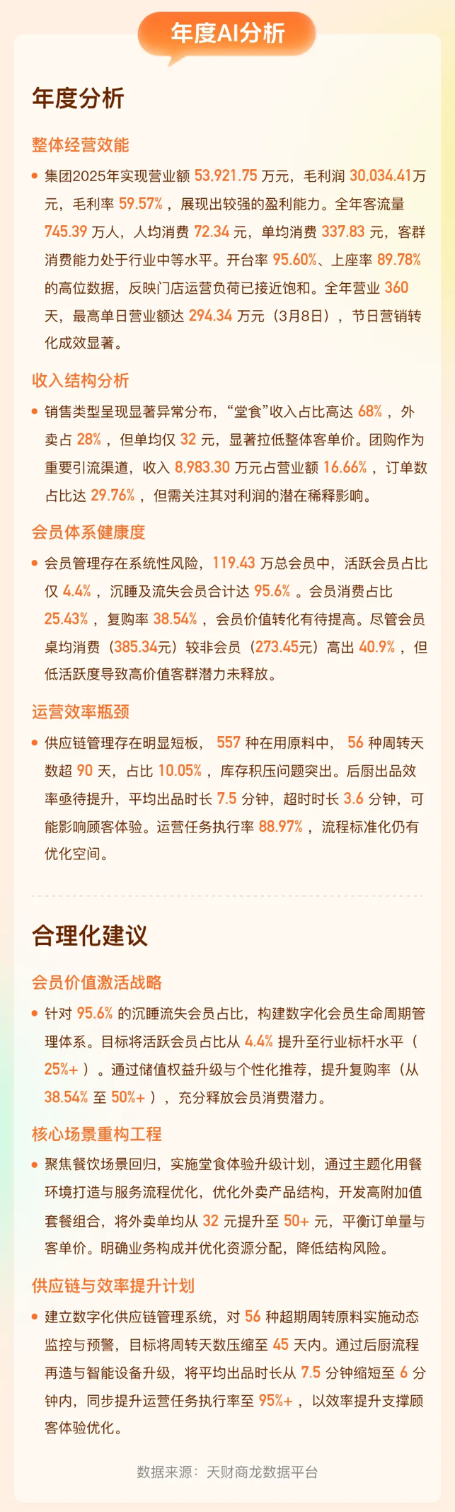 各位餐饮同行!年底复盘不用再翻一堆报表 —— 咱专属的年度经营账单,就是你 2025 的 “盈利底牌”!堂食、外卖、会员、成本…多个核心模块,把全年经营数据拆得明明白白,还藏着2026的赚钱关键,今天拿部分数据,让大家先睹为快!