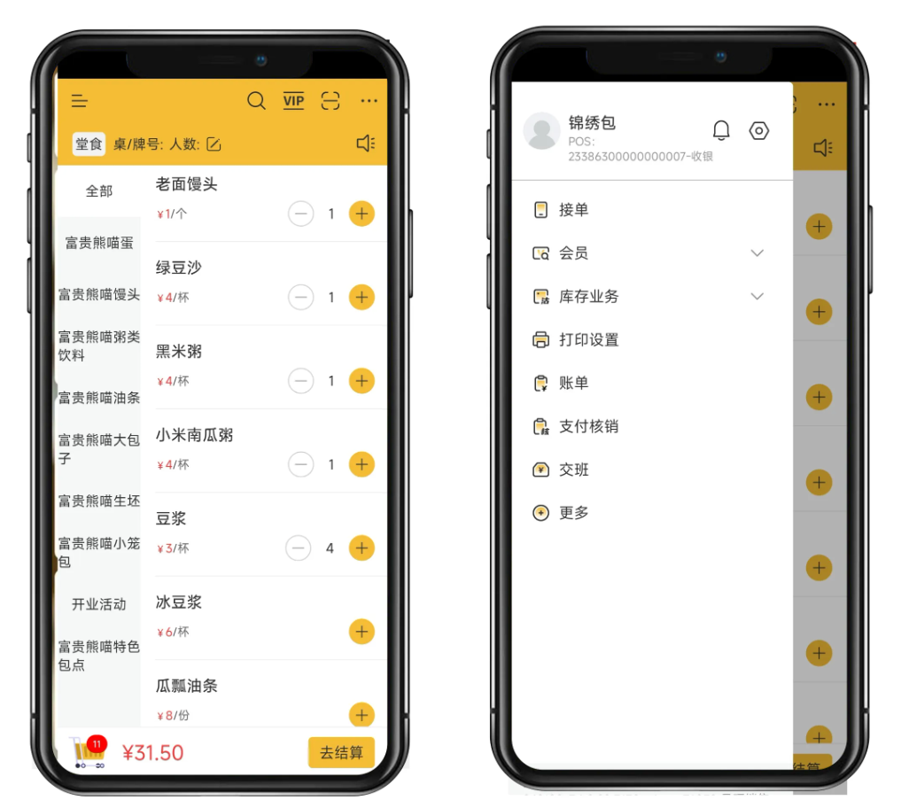 ②餐饮软件优化了点餐操作流程,直观易懂,无需专业收银人员,降低操作难度与工作体量;