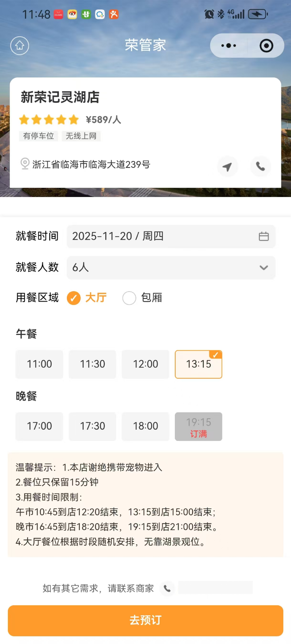 小程序上线后,新荣记无需再安排专人接听预订电话,大幅减少人力投入,实现降本增效;顾客则可随时随地登录查看实时可预订日期,无需反复致电确认,消费体验更便捷,这一前端链路的优化,与智能点餐系统、后端的供应链、后厨管理等环节形成协同,共同推动餐饮企业的持续增长。