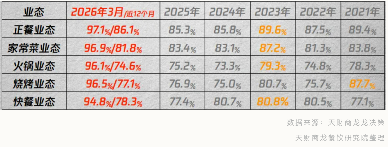 2026年3月,全行业门店存活率为96.3%,较2月微降0.87%,市场出清平稳。