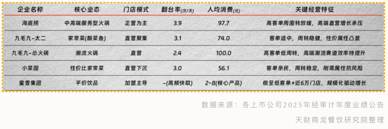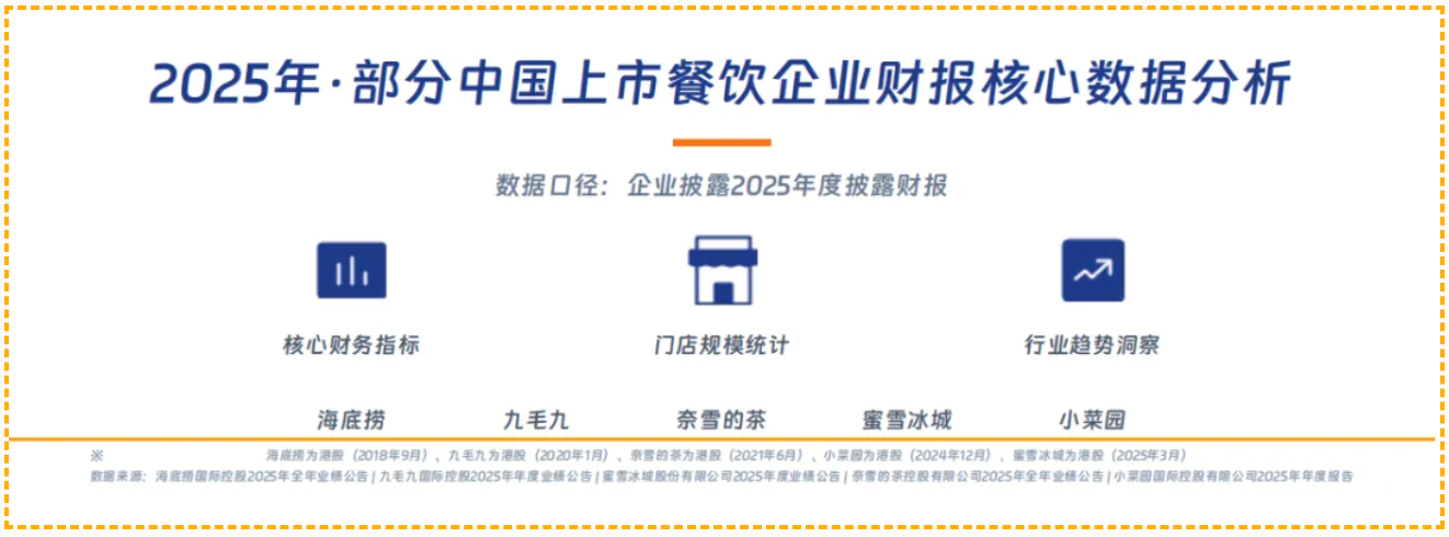 通过对海底捞、九毛九、小菜园、蜜雪冰城等上市餐企2025年财报的拆解,我们看到了行业头部玩家的战略选择与格局分化。